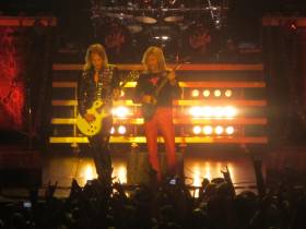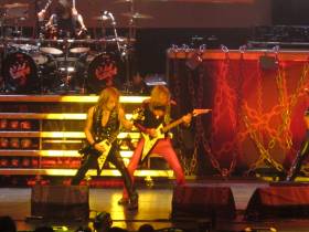 We had one funny incident when me and Richie had to abort the start to''Victim of Changes'' as I had knocked my top E string a mile out in the number before. Anyway I just retuned on stage and we started again. First time in nearly 40 years but thats rock and roll for ya and on a Priest set with flame throwers, bikes and explosions going off its easy to do.