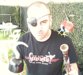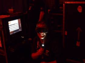Sam RisbridgerOne of the most important roles in our crew is wardrobe and our wardrobe guy is Sam Risbridger. Sam leads us to and from the dressing rooms and works hard to keep us all content and looking good on stage. He has to deal with critical costume changes for Rob and get all our clothes dry and clean after each show. He has to make sure the dressing rooms equipped properly and every things laid out correctly, take care of alterations or stage clothes repairs. He also looks after the food and booze room, guest and warm up rooms and organises after show meals. Basically he has to keep us temperamental old bastards happy !!. Difficult job. Oh yes and he mans Robs ''Cave'' on stage during the show. Sam deserves a medal particularly for dealing with our stage leathers after the show!!!.