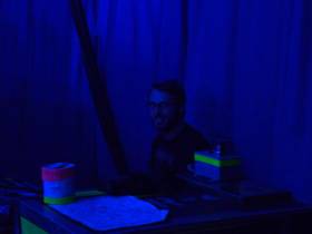 Andrew Seabeck - AJAndrew (AJ) Seabeck at his desk wearing strange goggles !---AJ's our laser guy and operates all the lasers throughout the show .Spectacular !