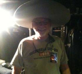 He's worked for other big bands when were off the road but always been there when we need him. Heres a photo of him in a strange hat. We Love Jim !!